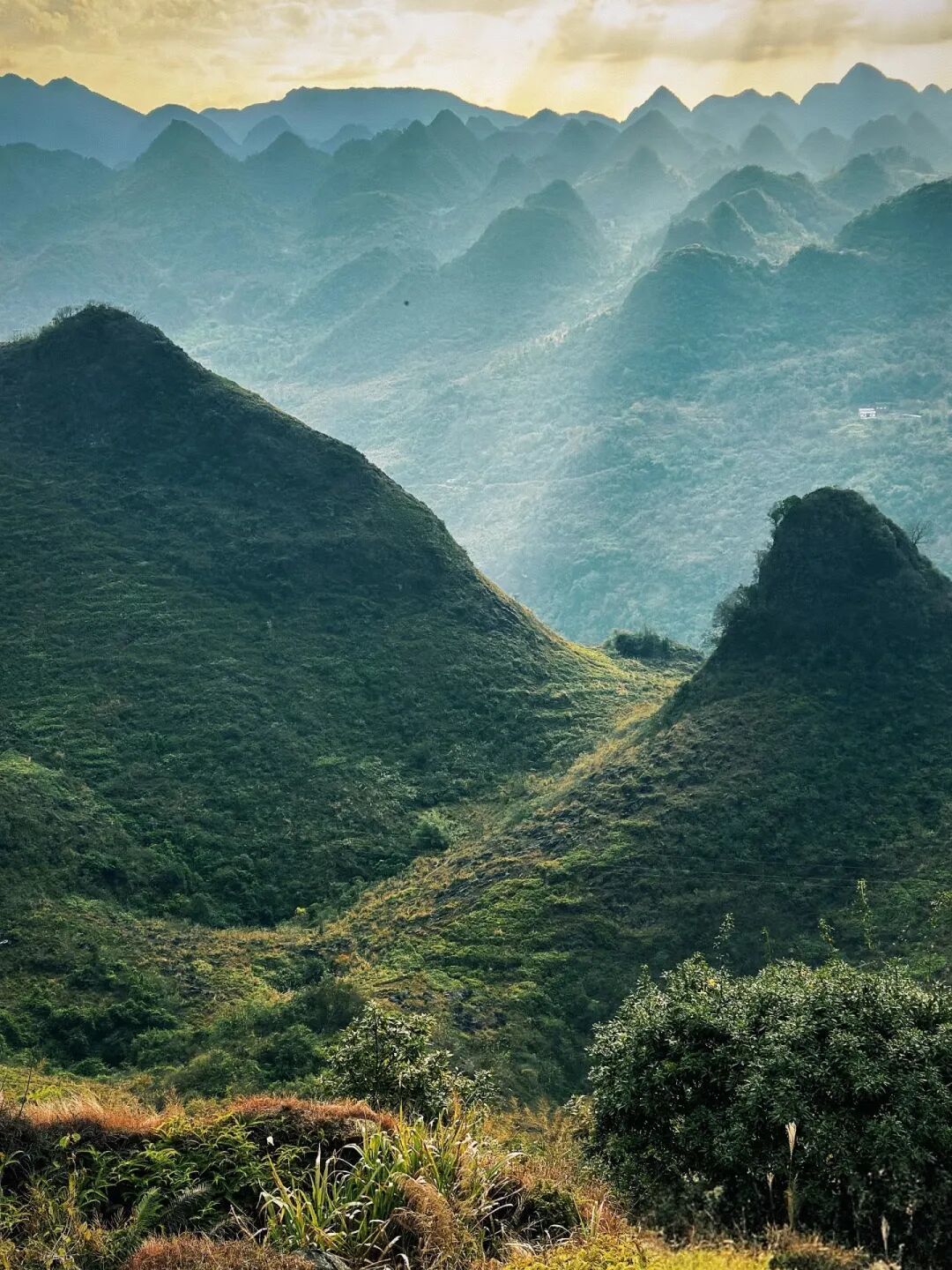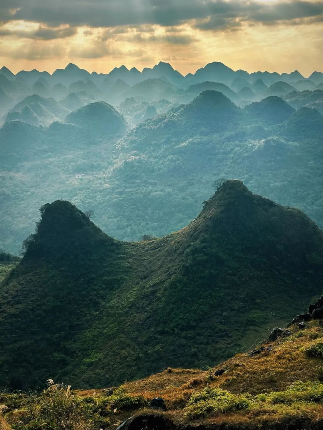 亮点2:千峰环立,喀斯特奇观 置身典型峰丛地貌,数千座石灰岩山峰如剑指苍穹,尽显自然壮美。